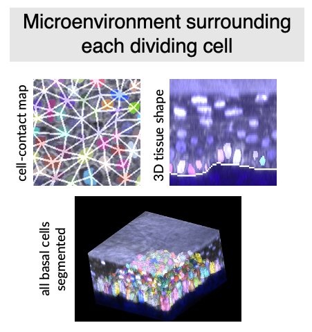 - encode cell-cell contact maps in 3D: by automatically inferring what cells are touching from 3D segmentations and defining a graph-based encoding of each cell’s “neighborhood”